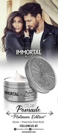 Immortal NYC Cream Pomade - "Iconic Man" delivers perfect holding power and natural brightness. This formula has ingredients that help repel moisture so your hair style keeps looking great, through a workout or on the beach. 150ml./5.07 fl. oz.