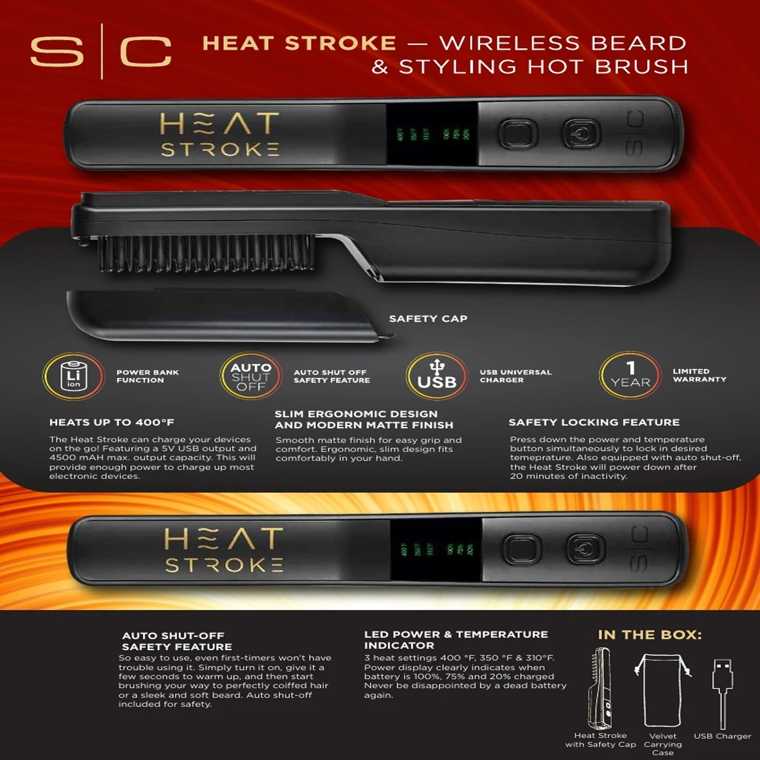Heat Stroke is a wireless hot beard brush that lets you effectively tame, style, and straighten even the most unruly hair and beard. StyleCraft's hot beard brush for men is much easier to use, helping you drastically cut the time you spend on hair and beard styling.